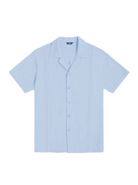 Men's Loose Casual Linen Shirt Cuban Guayabera Short Sleeve Beach Shirt