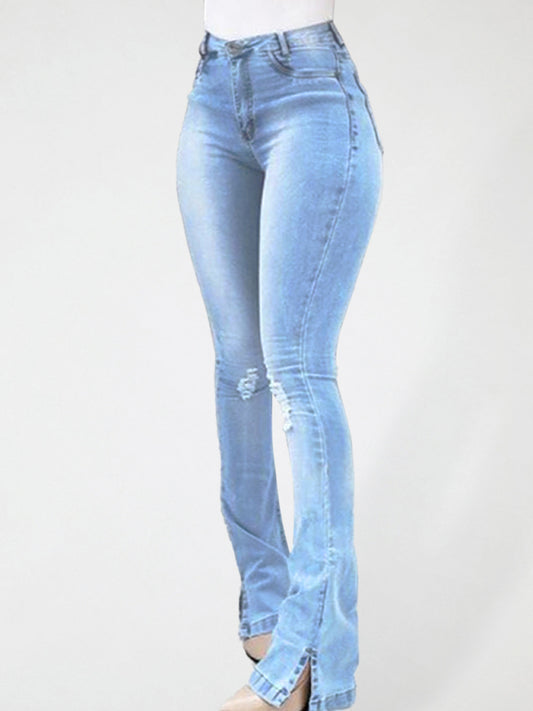 Women's Elastic Princess Sleeve Denim Shirt Casual Top