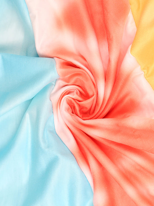 Women's Long Dress Digital Print Colorblock Short Sleeve Dress