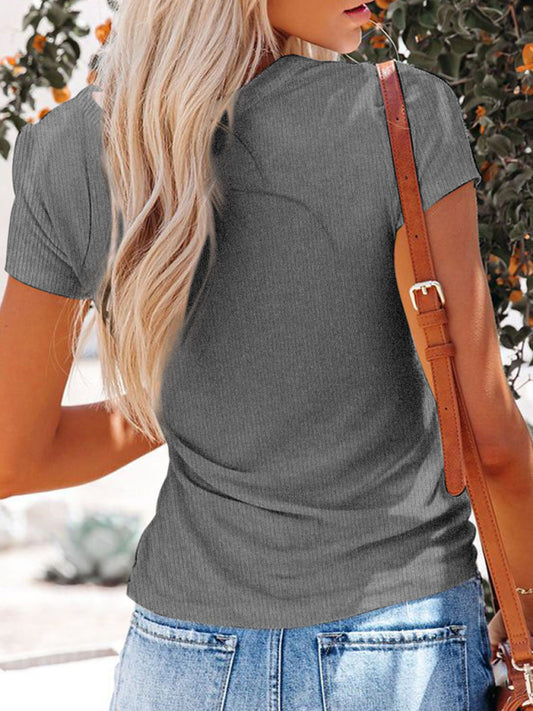 Women's Solid Color Batwing Sleeve Button Detail Tee