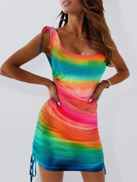 Women's Rainbow Ombre Tie Shoulder Mini Dress