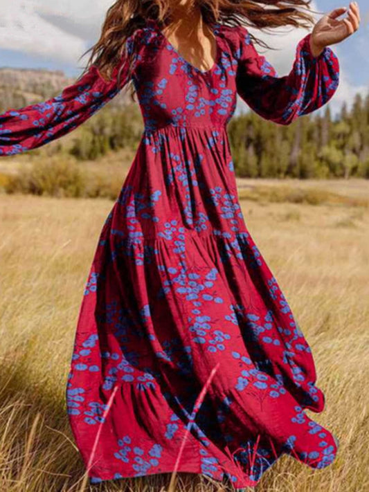 Women's Floral Print Flutter Sleeve V-neck Midi Dress
