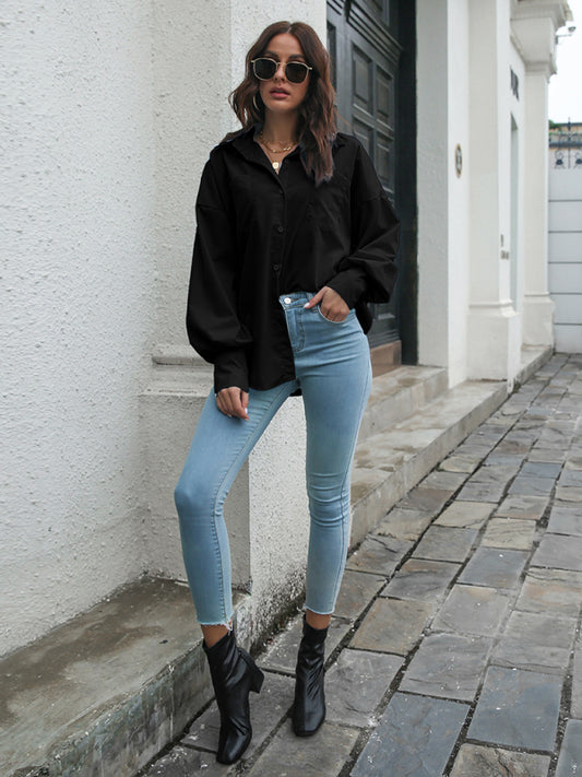 Women's new casual solid color long-sleeved shirt
