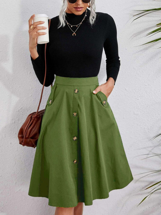 Women's Pocket Button Elegant Midi Skirt
