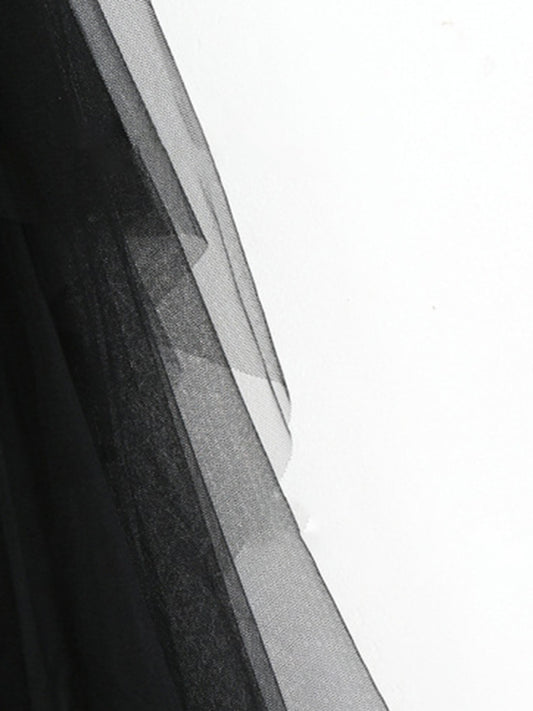 Women's Mesh splicing skirt high waist slimming solid color mid-length fairy skirt