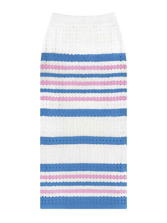 Women's Striped Hollow Short Vest + Slit Long Skirt Two-Piece Suit