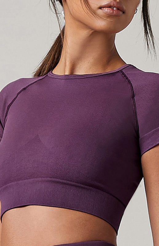 Women's Seamless Yoga Cropped Gym Suit Short Sleeve Top