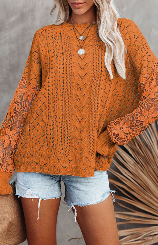 Women's Long Sleeve Cutout Petal Sleeve Sweater