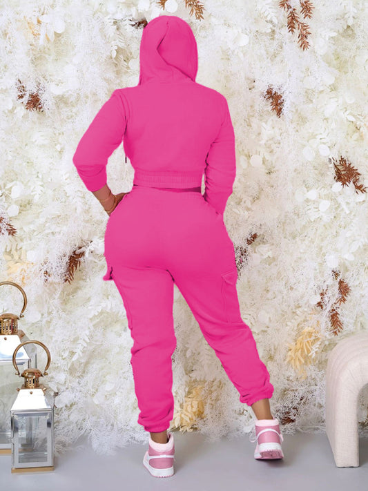 Women's Two-Piece Casual Sports Hooded Long-Sleeved with Matching Trousers
