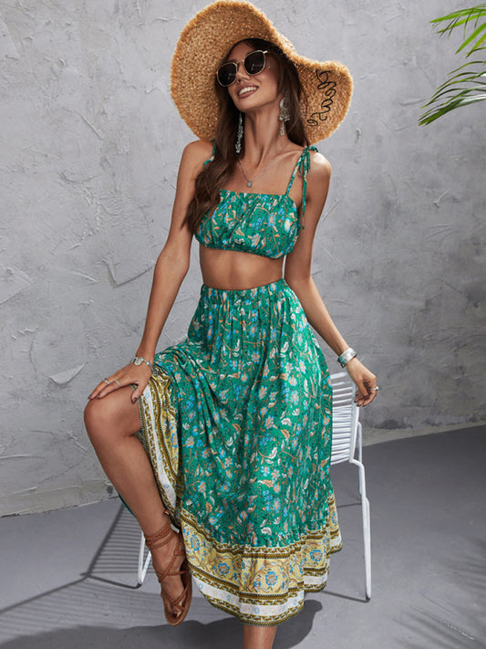 Women's Ethnic Printed Sling Top + Skirt Two-Piece Set