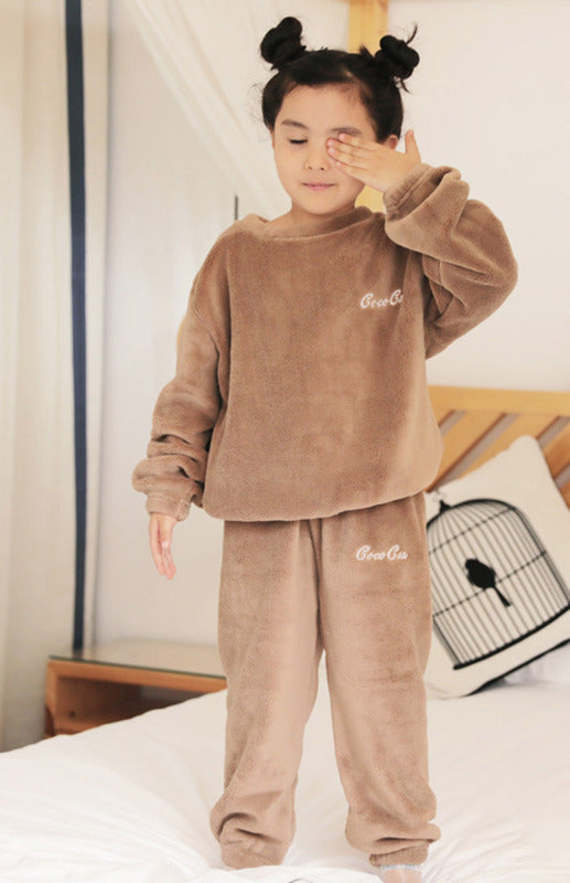 Girl Eyelash Cloud Print Brushed Children's Homewear Cotton Set