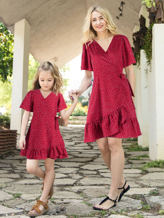 Kid's Girls Polka Dot Ruffle Hem Wrap Dress