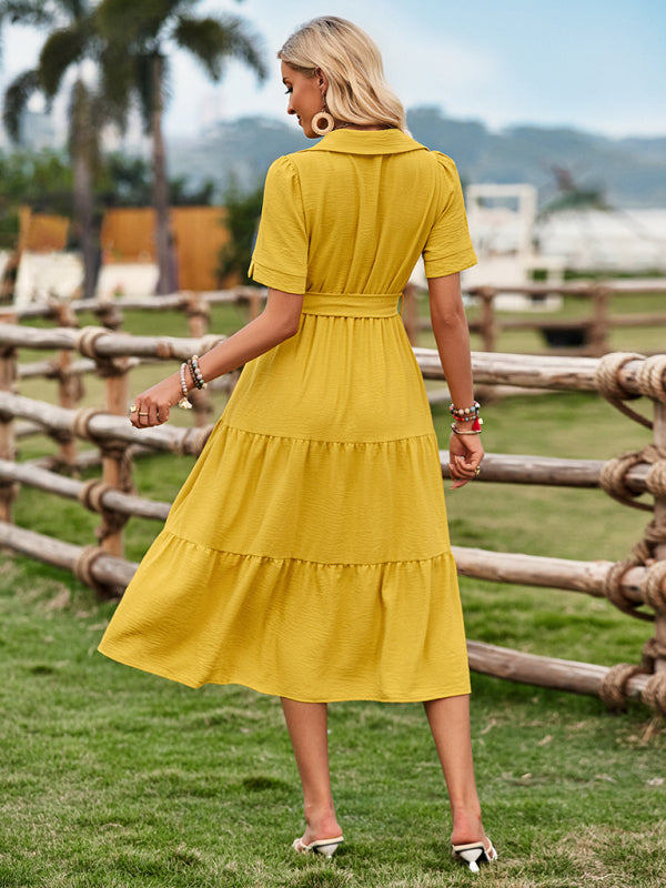 Women's fresh and sunny strap waist V-neck short-sleeved dress